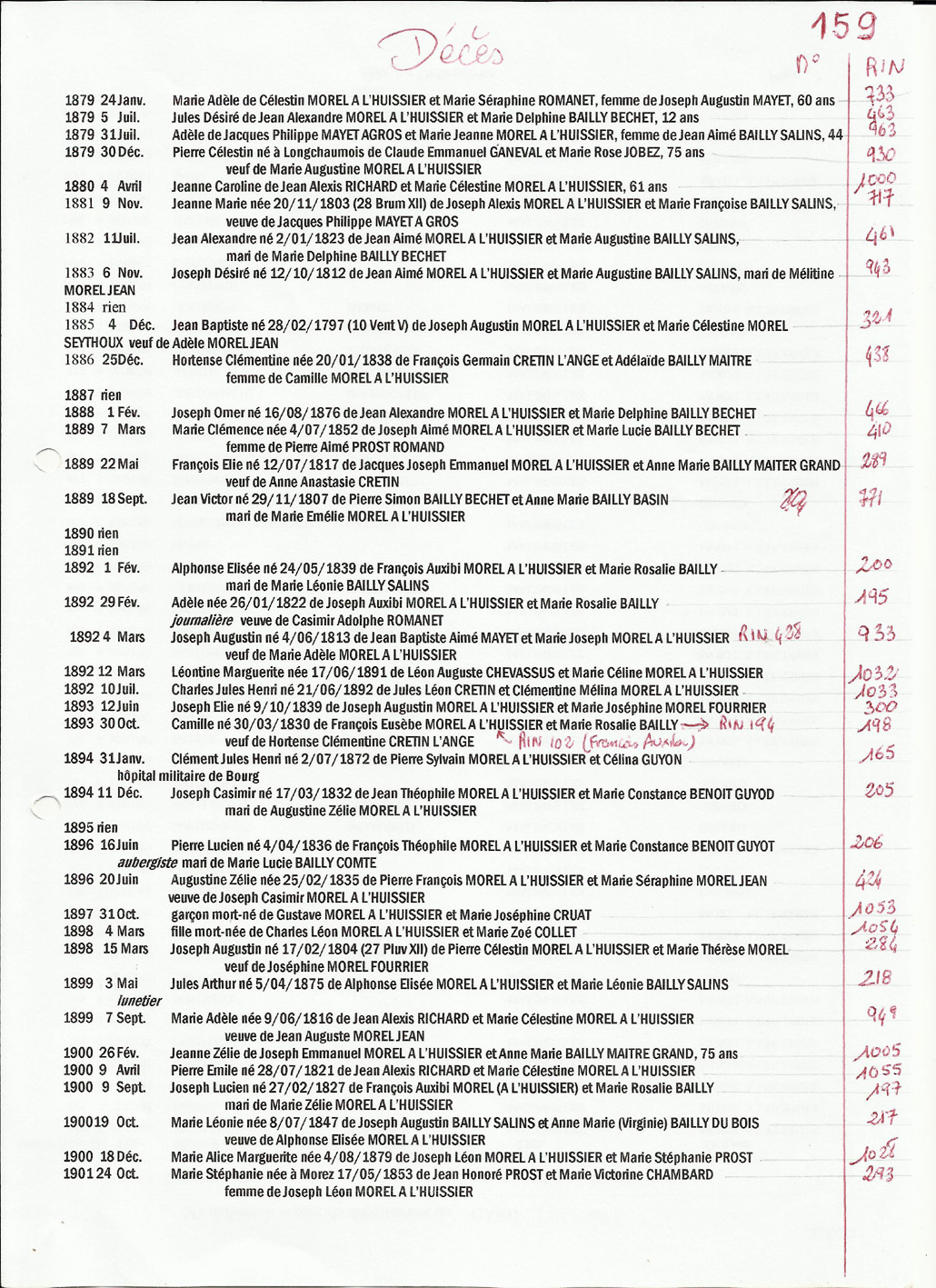 En rouge à gauche les numéros de ligne, en rouge à droite les numéros rin de chaque individu.