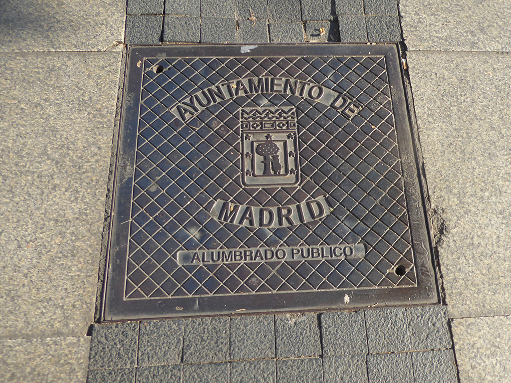Madrid et sa plaque aux armoiries de la ville: l'ours et le micocoulier