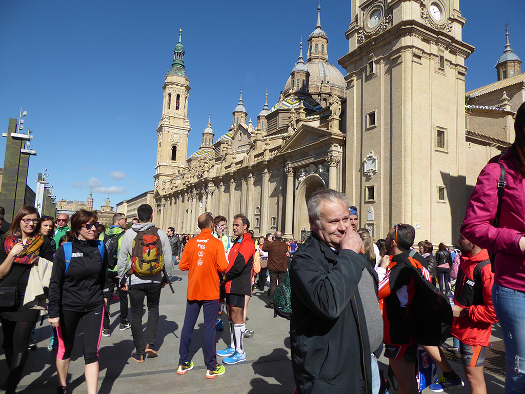 Ce ne sont pas des fidèles , mais l'arrivée d'un marathon qui se terminait sur la place de la cathédrale.