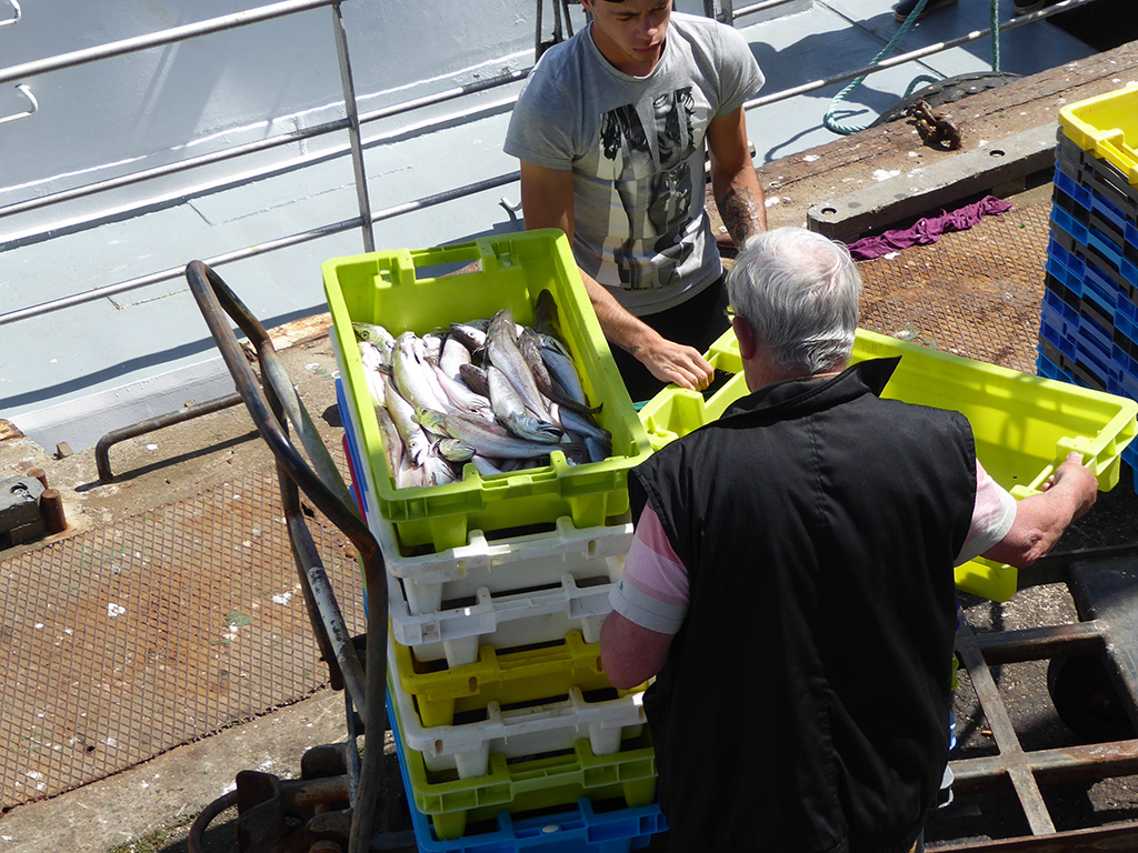 Lundi 12/06/2017 16h33, nous faisons vraiment une découverte: le retour des côtiers qui déchargent leur pêche tous les jours sur les quais de la criée du Guilvinec à partir de 16h00.
