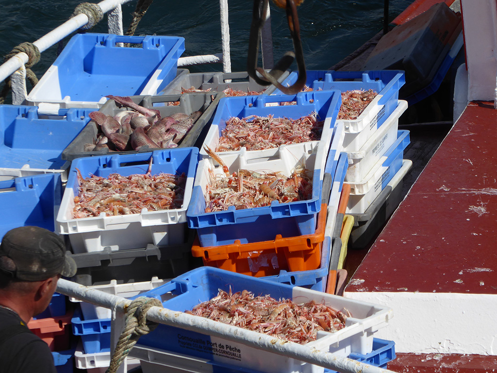 Lundi 12/06/2017 17h07, une des spécialités du port de Guilvinec est la langoustine.