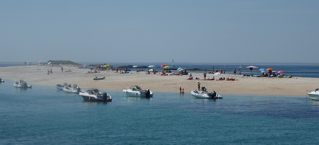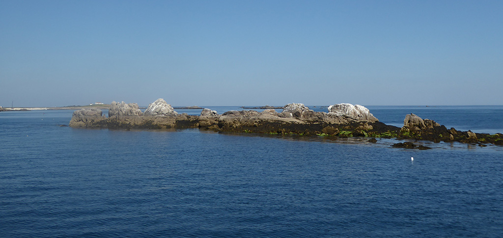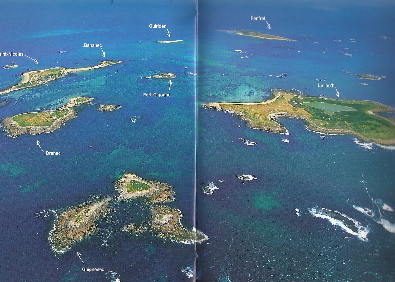Un aperçu de l'archipel, St Nicolas est en haut à gauche et Guignenec est vers le grand large. Entre St Nicolas et Bananec un tombolo submergé à marée haute. A 16h00 la vedette nous reprendra pour faire le tour des îles.