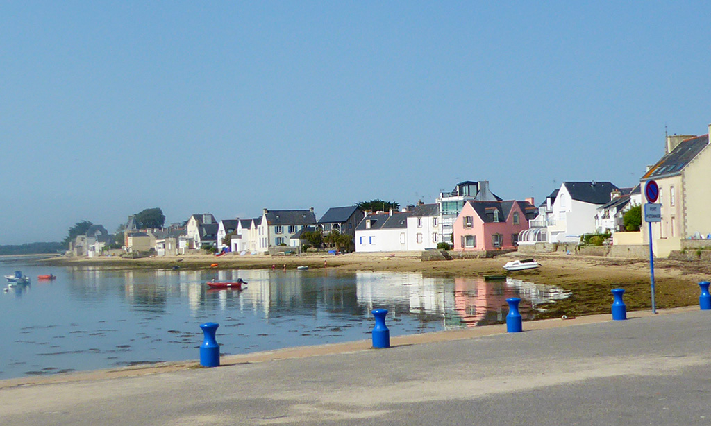 « Une ville paraît surgie dans le mirage. Elle émerge à peine de l'eau. Elle est blanche dans la mer glauque. (...) C'est une ville de pierre, éclatante comme une des Cyclades transportée dans la mer de Bretagne. Devant la Rivière de Pont-l'Abbé et la grève, faisant face aux ombrages de Loctudy, cette ville d'Orient est mouillée, telle un bateau de pierre blanche. Pas un arbre ; pas un verger ; pas un jardin. On ne distingue au pied du mur d'enceinte, rempart contre les vagues, qu'une ceinture de rocs énormes, de blocs noirs et une grève couverte de goémons. Les maisons sont pressées les unes contre les autres ; on ne voit point de rues, ni de sentiers. (...) Par-dessus les toits, seul et fin comme un doigt qui le détermine, le clocher grêle de l'église... Aride, ensoleillée et blanche dans la mer verte, c'est Tudy : c'est l'île. »