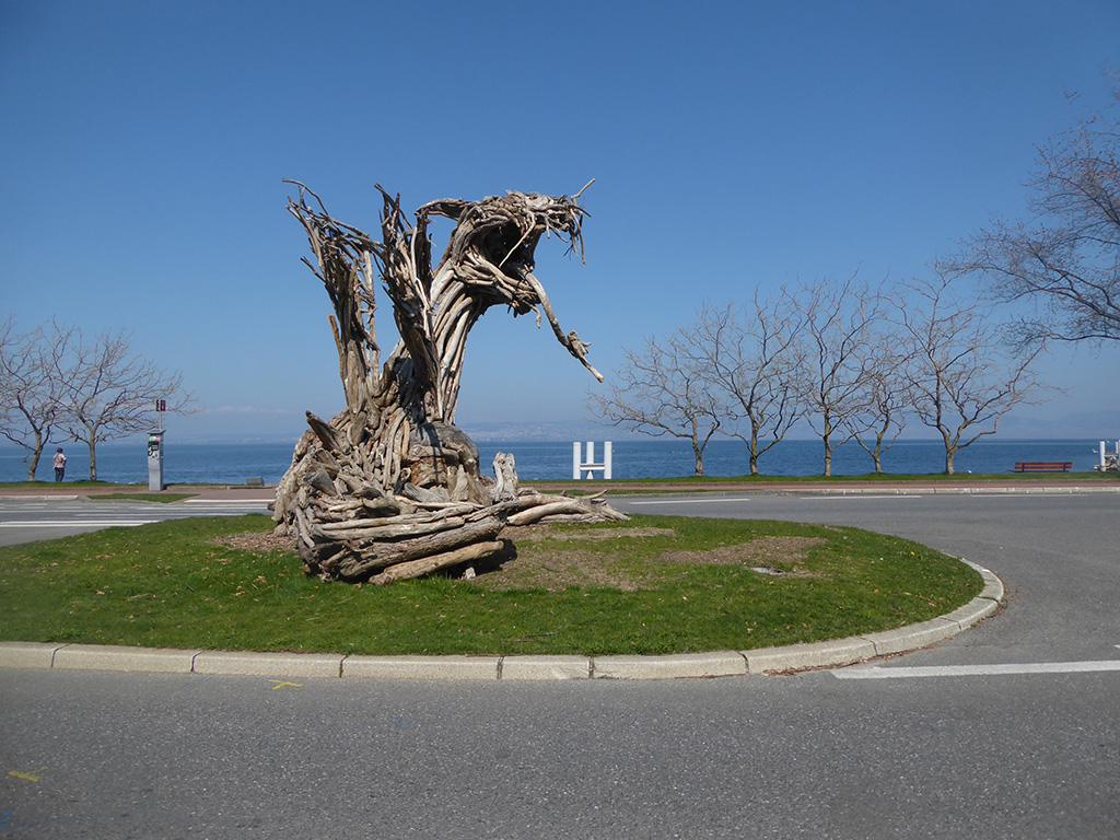 Les evianais adorent ce type d'assemblage réalisé avec des bois flottants, il y en a une dizaine dans la ville.