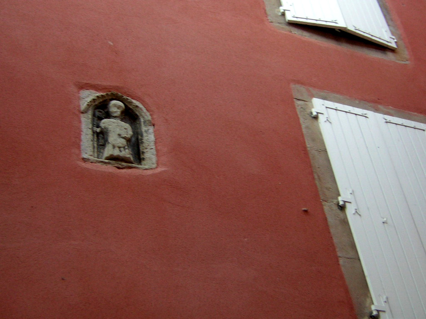 Un éclésiastique logé sous une arcature en pointe de diamant ! ! dixit le guide, c'est un monument historique !