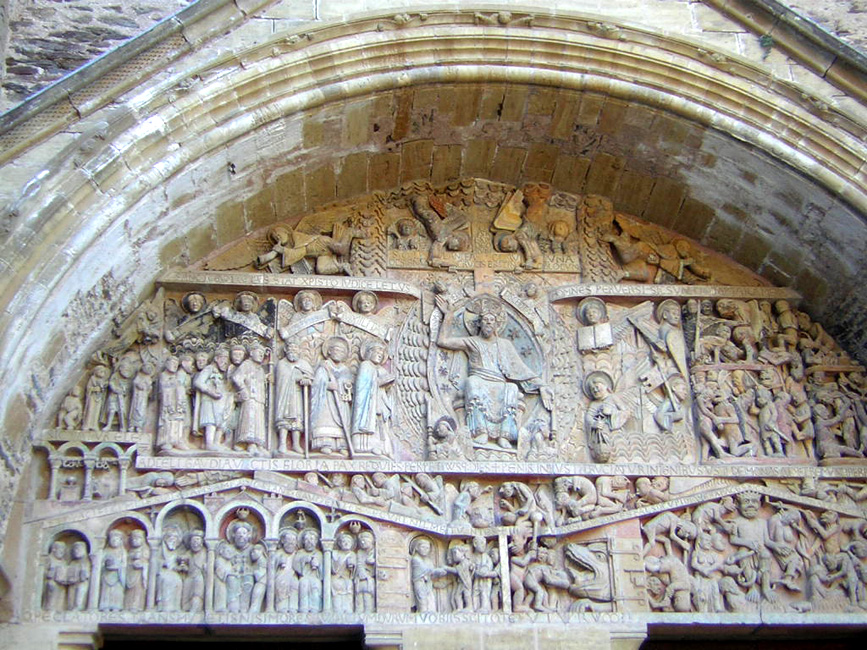 Conques, incontournable le tympan de l'abbatiale Ste Foy, XII siècle, 124 personnages!
