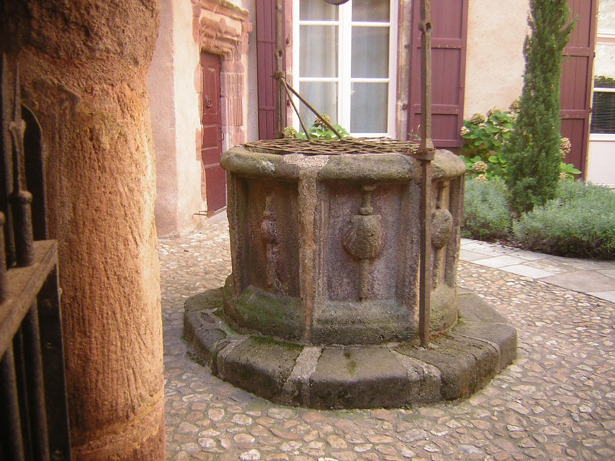 Rodez, maison canoniale, margelle du puits ornées de coquilles ( Penser St Jacques de Compostelle )