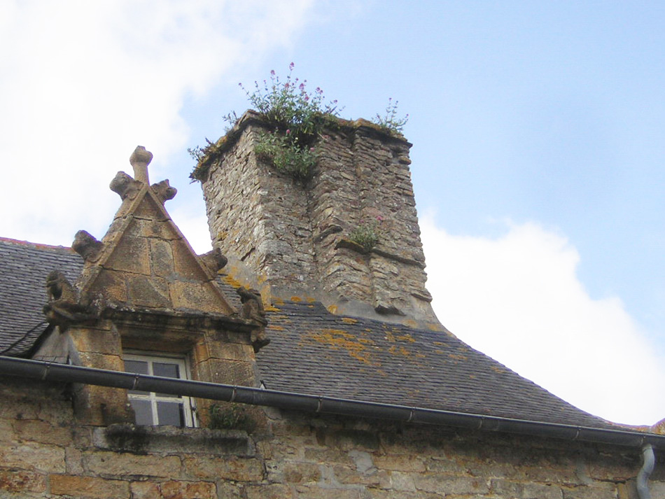 Deux détails de la façade: la cheminée ne doit pas servir souvent et la goutière fait désordre !!!