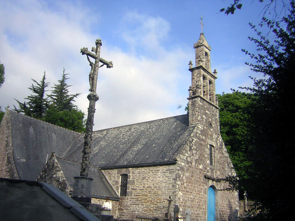 Fin de journée, dans un écrin de verdure la jolie chapelle de Trébabu