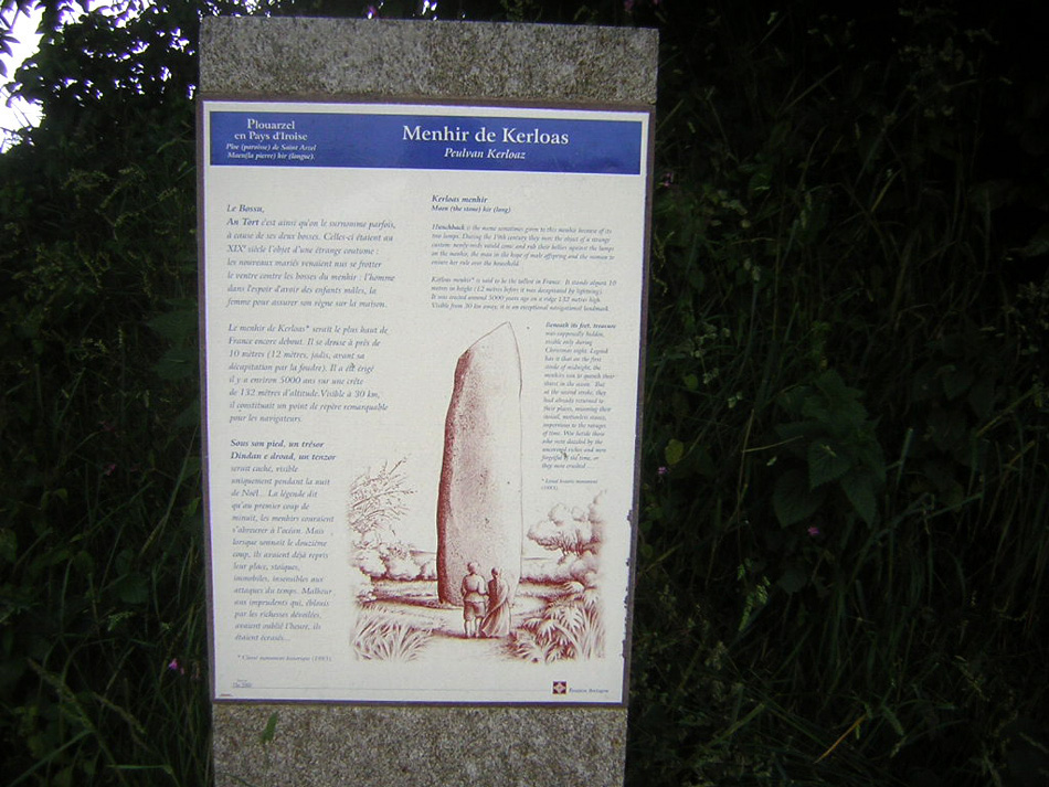 Le menhir le plus haut de France de face. Taille 9.50 mètres, age 5000 ans.