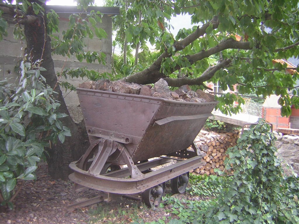 au détour d'une rue un wagonnet rempli de minerai de fer.