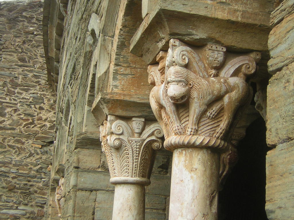 Prieuré de Serrabonne, détail "terrifiant" des piliers.