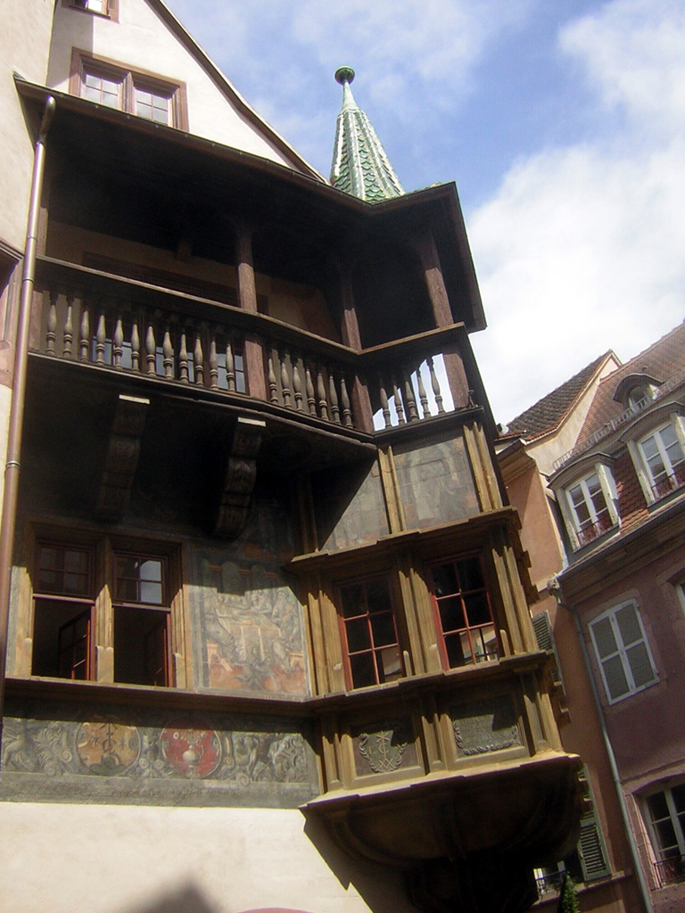 Colmar, la maison Pfister, galerie de bois fin du XVIeme et les peintures de Vacksterffer.