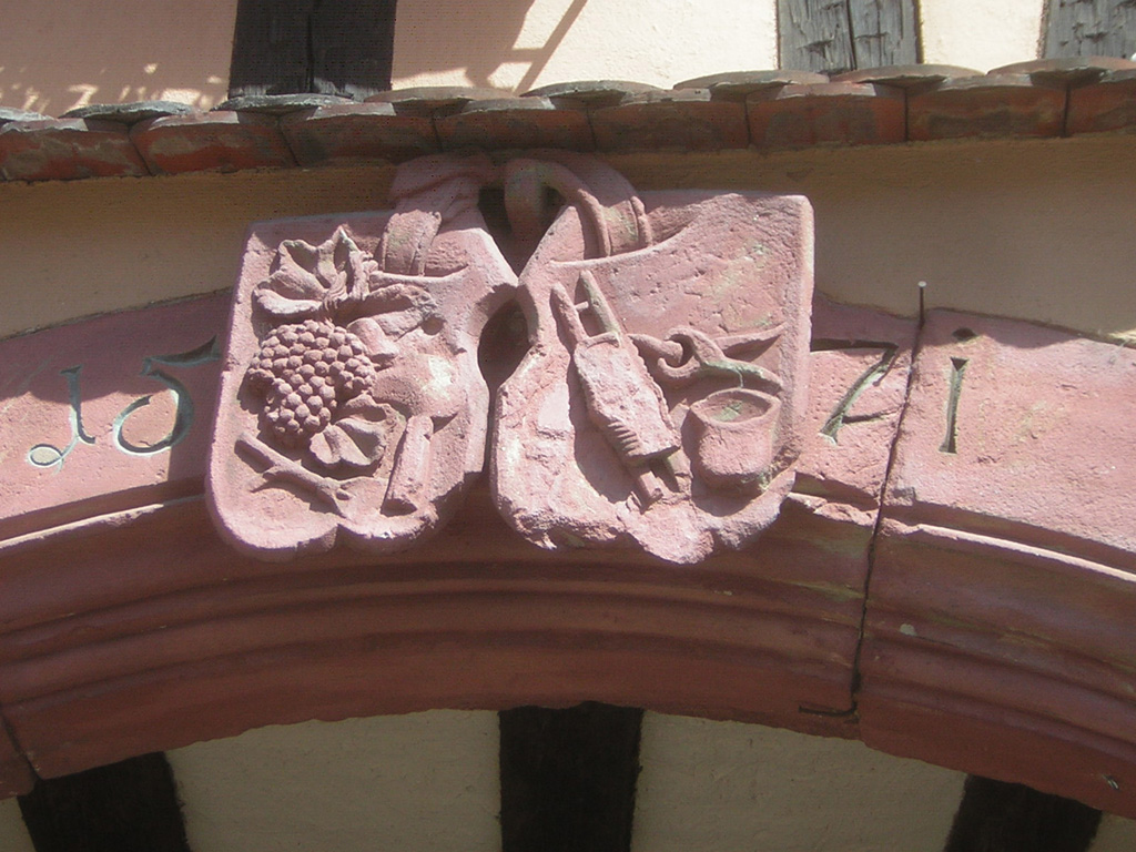 Voici un bel exemple, ces emblèmes se trouvent à Molsheim, à vous de trouver la corporation qu'elle représente.SUITE. |