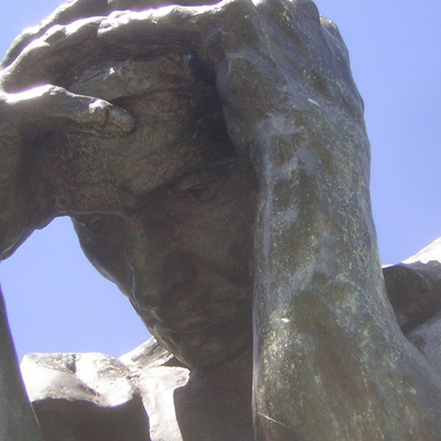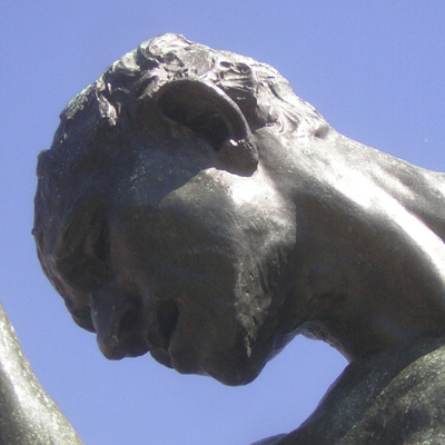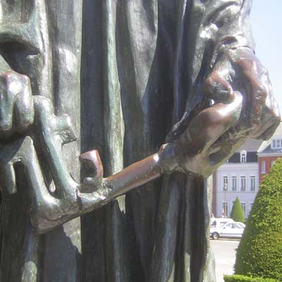 Vous les reconnaissez? en exclusivitée, rien que pour vous les six bourgeois de Calais....et la clef de la ville. Il me manque une tête !!!
