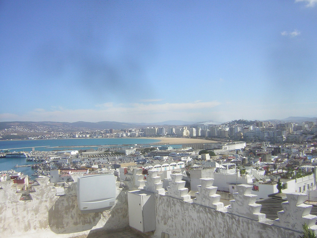 Tanger la plage vue de la terrasse du "salon bleu"