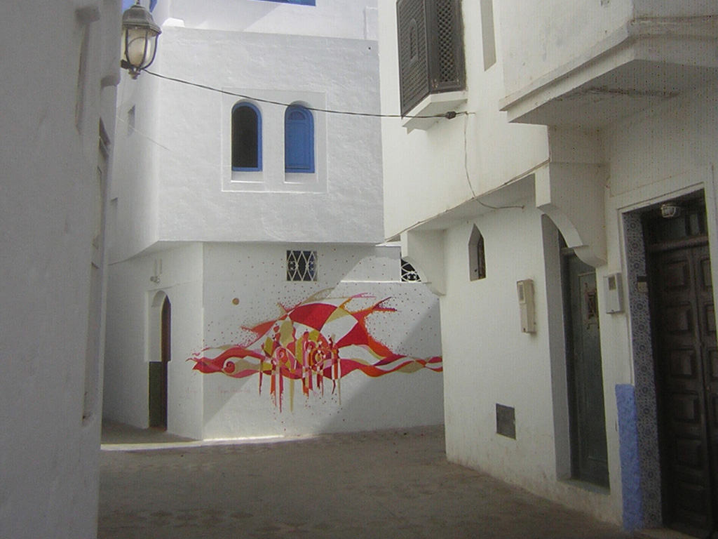 Asilah, médina , peintures murales ( bleu,blanc,rouge ???)
