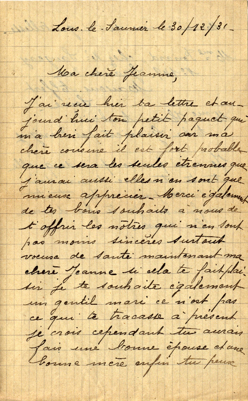 Lettre 02 du 30/12/1931 Yvonne Besson née Prost fille de Aimé Prost