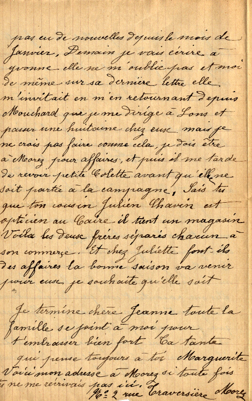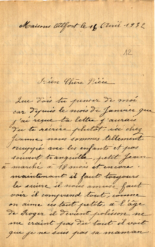 Lettre N° 12 lettre de Marguerite Ponard née Prost à sa nièce Tante Jeanne