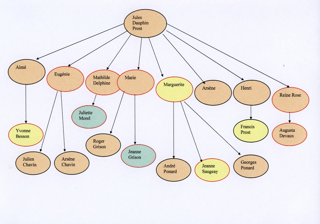 En jaune ceux ou celles qui envoient les lettres, en vert celles qui les recoivent .Cerclé de noir les hommes , cerclé de rouge les dames qui peuvent changer de patronyme au gré de leur mariage.