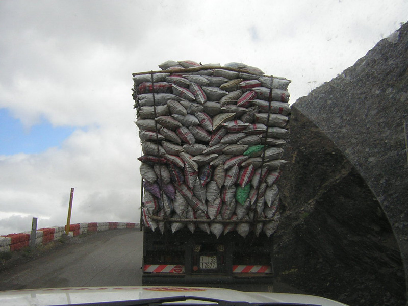 première rencontre insolite. D'après notre chauffeur Abdou, il s'agit d'un camion chargé de sacs de charbon ! ! ! |