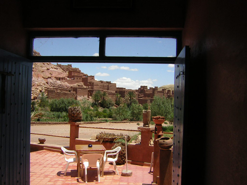 De l'autre côté de l'oued (à sec heureusement) le ksar (village fortifié) de Aït Benhaddou, inscrit depuis 1987 sur la liste du patrimoine mondial de l'Unesco |