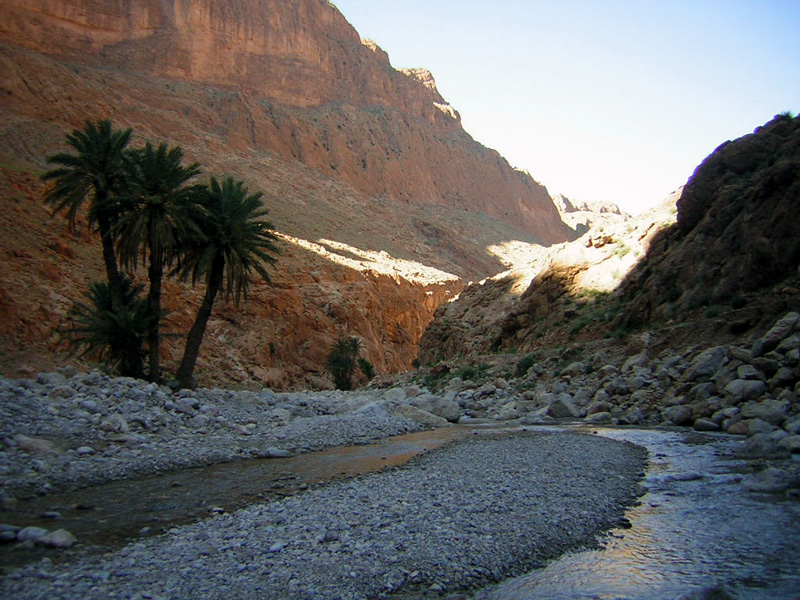 quelques palmiers égarés dans le lit de l'oued . |