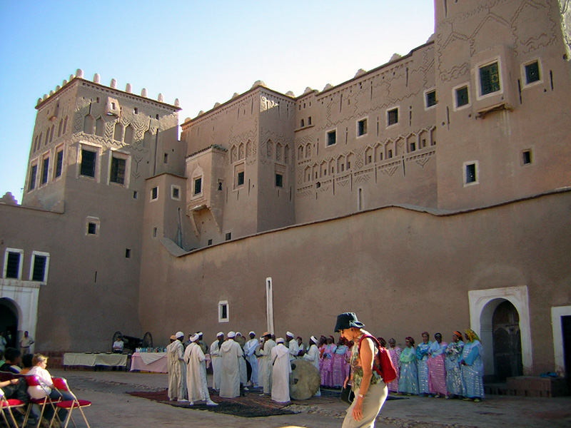 une vue de l'extérieur mais...Que se passe-t-il? nous avons la chance d'être témoin d'une fête locale avec musiciens et danseuses. |