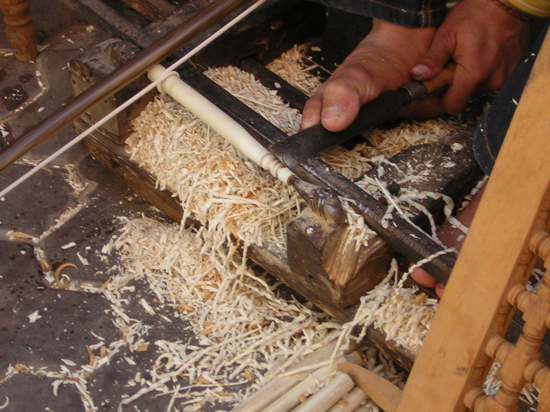 le tourneur sur bois, c'est le pied............je veux dire c'est le pied qui fait le travail. Regardez-bien. |