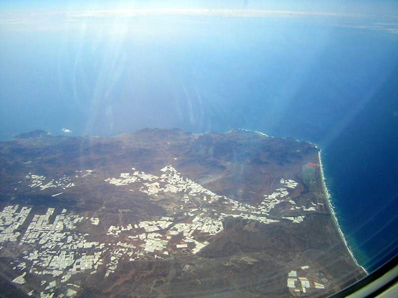 9h30 survol de Almeria, reconnaissable avec les taches blanches des serres . |