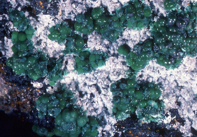 commentaires | Toutes les petites boules vertes c'est de la cornubite.Echantillon acheté à Ste Marie aux mines au milieu de "cailloux" poussiéreux méconnaissables !!!! |