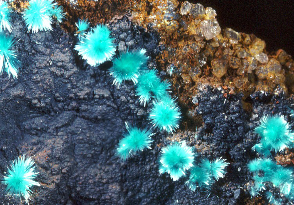 Mixite de Cap Garonne Var France, superbes oursins sur lampadite ou wad cuprifère |