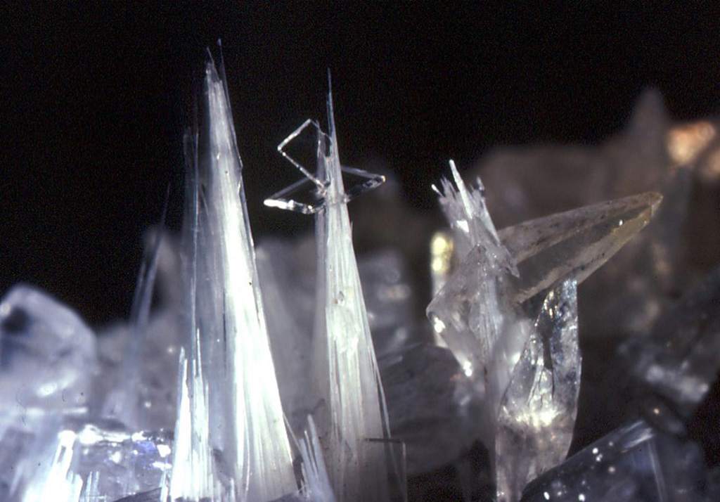 Tunisite de Condorcet Drome France, la plaquette incolore embrochée , c'est un cristal de celestite. |