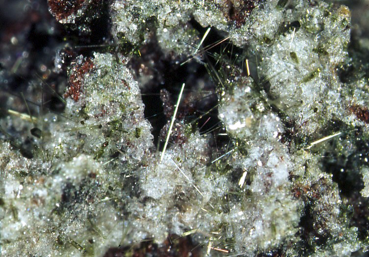 références | Diopside variété sahlite de Murol Puy de dome France grossissement 50 photo N° 00385/0000 boite numero : 7323 |