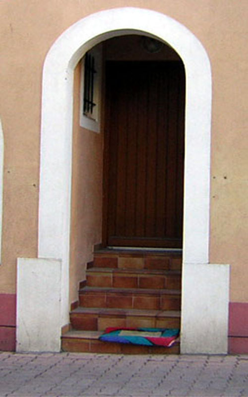 porte en retrait ! SVP essuyez vos pieds avant d'entrer !