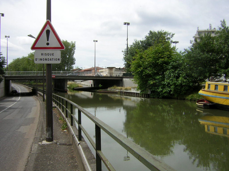 Le saviez-vous ? suivre les berges du canal du midi c'est risqué, la preuve ! panneau risque d'inondation